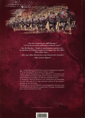 Une saga épique aux accents fantastiques qui revisite la légende carolingienne, riche en batailles et luttes intestines, qui nous mène des sables brûlants d'El Andalus aux confins glacés de la Vasconie. Karolus Magnus voit sa stratégie pour conquérir les Marches du Sud tourner à l'échec. Le comte Roland et ses hommes sont massacrés par les Vascons lors d'un piège tendu dans les hautes montagnes. A Saragosse, Marwan découvre que Brunhilde n'a pas trahi mais il est trop tard pour enlever la cité occupée par les sarrasins. Nos protagonistes font tous route vers les Marches du Nord : le pays saxon...