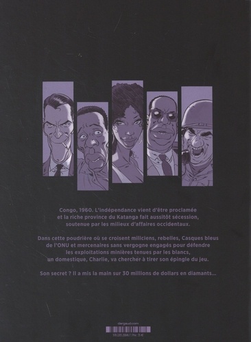 Voici enfin le thriller politique africain à succès de Nury et Vallée réuni en intégrale. En 1960, après quatre-vingts ans passés sous la domination coloniale belge, le Congo proclame son indépendance ; moins de deux semaines après, la riche province minière du Katanga fait sécession. Le Congo et le Katanga entrent immédiatement en guerre ; au coeur du conflit : la possession des territoires miniers. De nombreux massacres et exodes de civils s'ensuivent. L'ONU impose alors sa médiation et l'envoi de Casques bleus sur place... Dans le même temps, une horde d'ignobles mercenaires est recrutée pour aller libérer les exploitations minières occupées... Et un domestique noir, Charlie, tord le cou au destin en mettant la main sur un trésor inestimable : 30 millions de dollars de diamants... ce qui fait de lui le Noir le plus recherché du Katanga. Un thriller politique sans concession.