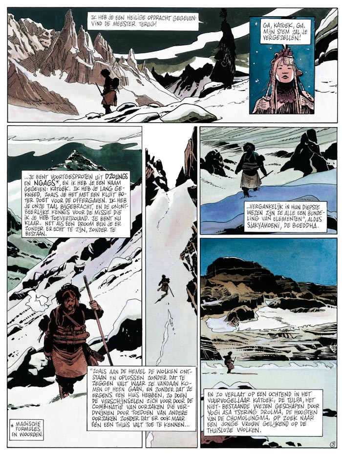 De kleine Pema is intussen een grote meid geworden. Nadat ze de sengei ngaro onder de knie kreeg, kwam ze, na de dood van hun leider, aan het hoofd van een bende rovers. Maar die troep ongeregeld vormt Pema snel om tot groep dappere krijgers die vecht tegen de Chinese bezetter, misdadige Gyalpo's en perverse lama's. Maar Katoek de tulpa gaat in het haast eindeloze en onoverzichtelijke Tibetaans gebergte op zoek naar de 'sneeuwleeuwin'. En als ze elkaar ontmoeten, zal dat het leven van beiden grondig veranderen ... Pema Ling ondergaat het lot van een vrouw die alle conventies en tradities met voeten treedt en haar leven riskeert tegen de bezetter. Georges Bess is een geweldig verhalenverteller en tekenaar. In deze reeks, waarin hij ook zijn liefde voor Tibet bezingt, bewijst hij dat eens te meer ...