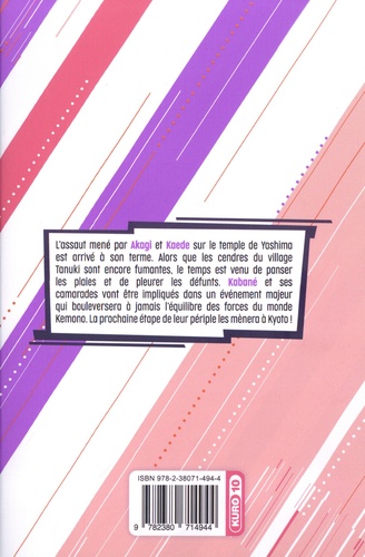 Une série qui dynamite les codes du récit fantastique en le plaçant dans un contexte urbain et contemporain. L'assaut mené par Akagi et Kaede sur le temple de Yashima est arrivé à son terme. Alors que les cendres du village Tanuki sont encore fumantes, le temps est venu de panser les plaies et de pleurer les défunts. Kabané et ses camarades vont être impliqués dans un événement majeur qui bouleversera à jamais l'équilibre des forces du monde Kemono. La prochaine étape de leur périple les mènera à Kyoto !