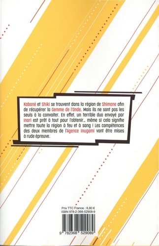 Une série qui dynamite les codes du récit fantastique en le plaçant dans un contaxte urbain et contemporain. Kabané et Shiki se trouvent dans la région de Shimane afin de récupérer la Gemme de l'Onde. Mais ils ne sont pas les seuls à la convoiter. En effet, un terrible duo envoyé par Inari est prêt à tout pour l'obtenir... même si cela signifie mettre toute la région à feu et à sang ! Les compétences des deux membres de l'Agence Inugami vont être mises à rude épreuve.