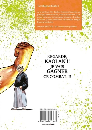Le village de l'Aube La 7e année de l'ère Taishô, Yoroizuka Saneatsu, un grand propriétaire terrien, construit autour de sa colossale ferme une communauté utopique : le village de l'Aube, qui est membre de l'association Kengan depuis sa fondation. Palmarès KENGAN : 282 victoires et 103 défaites. REGARDE, KAOLAN !! JE VAIS GAGNER CE COMBAT !!!