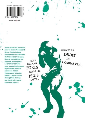 Seuls les plus forts parmi les plus forts auront le droit de combattre ! Après avoir fait un retour pour le moins fracassant, Ohma Tokita intègre l'équipe des combattants de l'Association Kengan, dans la compétition qui l'oppose au Rengoku ! Le premier combat sera un duel de boxeurs légendaires puisqu'il opposera Kaolan Wongsawat à Carlos Medel ! Lequel de ces deux génies du ring parviendra à mettre l'autre au tapis ? !