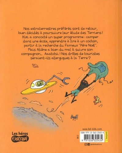Nos extraterrestres préférés sont de retour, bien décidés à poursuivre leur étude des Terriens ! Kiki a concocté un super programme : camper dans une école, apprendre à lire à un cochon, partir à la recherche du fameux "Père Noël... Mais Aliène a bien du mal à suivre son compagnon... Aaatchii ! Nos drôles de touristes seraient-ils allergiques à la Terre ?