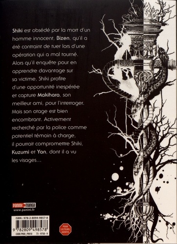 Shiki est obsédé par la mort d'un homme innocent, Bizen, qu'il a été contraint de tuer lors de l'opération "Shibuya" . Profitant d'une opportunité inespérée, il capture le meilleur ami de la victime pour le questionner. Mais cet otage est bien encombrant. Activement recherché par la police comme potentiel témoin à charge, il pourrait compromettre Shiki mais aussi Kuzumi et Yan dont il a vu les visages. Que va-t-il advenir de ce témoin gênant. Yua Kotegawa est reconnue pour ses thématiques ô combien singulières et sombres. L'auteure de Détenu 042 et Anne Freaks propose ici une intrigue simple et redoutable qui rappelle la question posée dans Death Note : un meurtre est-il justifié si la victime est un criminel ? La mangaka édulcore la vision manichéenne de l'être humain selon laquelle les individus sont bons ou mauvais. Elle instaure la notion de gris, de demi-teinte en mettant en avant la jeunesse mise de côté par la société japonaise ou les victimes de l'immigration.