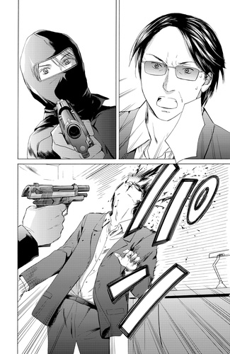 Shiki et son groupe s'apprêtent à tuer cinq yakuzas qui dirigent le Shueikai. Malgré leur inexpérience, Shiki et Ei devront être rapides et efficaces car il leur faudra attaquer par surprise afin que leurs cibles n'aient pas le temps de réagir. La prudence fait aussi partie du plan puisque l'immeuble du clan est surveillé par la police... Yua Kotegawa est reconnue pour ses thématiques ô combien singulières et sombres. L'auteure de Détenu 042 et Anne Freaks propose ici une intrigue simple et redoutable qui rappelle la question posée dans Death Note : un meurtre est-il justifié si la victime est un criminel ? La mangaka édulcore la vision manichéenne de l'être humain selon laquelle les individus sont bons ou mauvais. Elle instaure la notion de gris, de demi-teinte en mettant en avant la jeunesse mise de côté par la société japonaise ou les victimes de l'immigration.