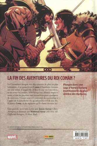 Les derniers mots de Robert E. Howard à propos de Conan, devenu Roi, indiquaient qu'un jour il se lasserait du trône et voguerait vers l'ouest, vers des terres et des aventures inconnues. Découvrez à présent ces nouvelles histoires qui conduisent le Barbare devenu Roi, vers un terrible danger. Jason Aaron (Avengers) revient sur la série qu'il a lancée avec l'aide du dessinateur Mahmud Asrar (X-Men). Ces aventures n'ont été relatées dans aucun autre format, que ce soit en roman ou en BD, c'est donc un évènement pour tout fan de Conan qui se respecte.