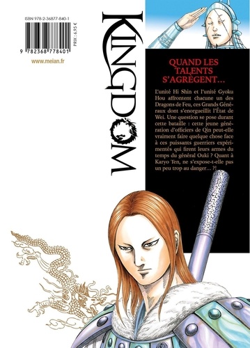 Quand les talents s'agrègent... L'unité Hi Shin et l'unité Gyoku Hou affrontent chacune un des Dragons de Feu, ces Grands Généraux dont s'enorgueillit l'Etat de Wei. Une question se pose durant cette bataille : cette jeune génération d'officiers de Qin peut-elle vraiment faire quelque chose face à ces puissants guerriers expérimentés qui firent leurs armes du temps du général Ouki ? Quant à Karyo Ten, ne s'expose-t-elle pas un peu trop au danger... ? !