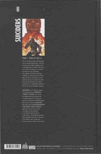 Trix et son frère Johnny font partie de la nouvelle génération, celle qui n'a pas connu New Angeles avant le Tremblement de Terre. Elevés au sein d'une ville murée, la violence est devenue leur quotidien, leur refuge. A la tête des Kings of Hell.A., Johnny est prêt à tout pour garder la mainmise sur son quartier, mais en croisant la route d'un certain Leonard, un ancien Suicider, les choses vont prendre une tournure inattendue... Contenu : SUICIDERS: KINGS OF HELL.A #1-6