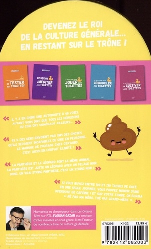 Des blagues, des anecdotes et des jeux pour ne jamais s'ennuyer au petit coin ! Une nouvelle édition des meilleures lectures sur le trône ! 5 petits livres plein d'humour et de culture générale pour ne jamais s'ennuyer, même au petit coin. Il y en aura pour tous les goûts : Histoire, sciences naturelles, médecine, nouvelles technologies, people... Et toujours avec une blague pour sourire ! Se cultiver sans se prendre la tête, testé et approuvé par les auditeurs et les téléspectateurs de Florian Gazan ! - Le petit livre pour se cultiver aux toilettes : Le retour 96 nouvelles infos futiles et utiles pour se cultiver sur le trône ! - Le petit livre pour se tester aux toilettes 96 vrais/faux amusants Vrai ou faux ? Un escargot se déplace à la vitesse de 360 m/h. Vrai. Du coup, pour un escargot, une tortue, c'est Usain Bolt. - Le petit livre des citations à méditer aux toilettes 96 " Qui a dit " et leur chute ! Qui a dit : " L'Empire, c'est la paix" ? Napoléon III ou Dark Vador ? (Napoléon III) - Le petit livre pour jouer aux toilettes 96 sudoku, quiz, mots fléchés... - Le petit livre pour gribouiller aux toilettes De quoi passer le temps en laissant ses pensées s'échapper... sur le papier !