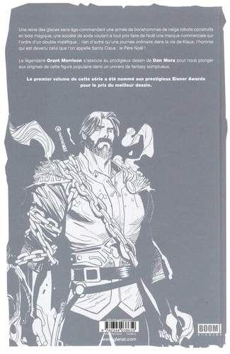 Pour les fêtes, on s'occupe de lui faire la sienne ! Une reine des glaces sans âge commandant une armée de bonhommes de neige robots construits en bois magique. Une société de soda voulant à tout prix faire de Noël une marque commerciale, sur l'ordre d'un double maléfique... Rien d'autre qu'une journée ordinaire dans la vie de Klaus, l'homme qui est devenu celui que l'on appelle Santa Claus : le Père Noël ! Le légendaire Grant Morrisson s'associe au prodigieux dessin de Dan Mora pour nous plonger aux origines de cette figure populaire dans un univers de fantasy somptueux. Le premier volume de cette série a été nommé aux prestigieux Eisner Awards pour le prix du meilleur dessin.