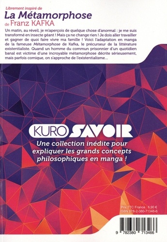 Un matin, au réveil, je m'aperçois de quelque chose d'anormal : je me suis transformé en insecte géant ! Mais ça ne change rien ! Je dois aller travailler et gagner de quoi faire vivre ma famille ! Voici l'adaptation en manga de la fameuse Métamorphose de Kafka, le précurseur de la littérature existentialiste. Quand un homme du commun prisonnier d'un quotidien banal est victime d'une incroyable métamorphose décrite sérieusement, mais parfois comique, on s'approche de l'existentialisme...