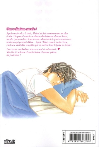 Après avoir vécu à trois, Shûsei et Aoi se retrouvent en tête à tête. Un grand avenir se dresse dorénavant devant Leon, tandis que nos deux tourtereaux dessinent à quatre mains un horizon qui promet d'être... épicé ! Mais avant toute chose, c'est une véritable tempête qui va mettre tout le lycée en émoi ! Les coeurs s'emballent sous un seul et même toit ! Voici le 21e volume d'une histoire d'amour pleine de fraîcheur !