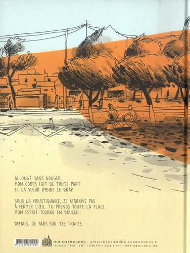 Allongé sans bouger, mon corps fuit de toute part et la sueur imbibe le drap. Sous la moustiquaire, je n'arrive pas à fermer l'oeil. Tu prends toute la place. Mon esprit tourne en boucle. demain, je pars sur tes traces.