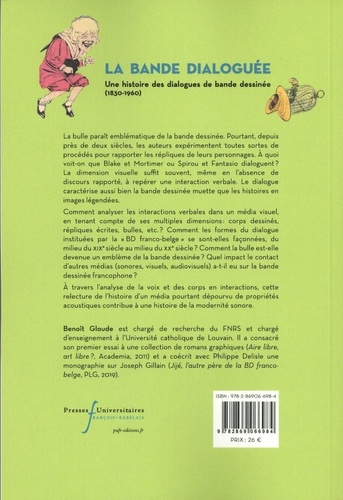 La bulle parait emblématique de la bande dessinée. Pourtant, depuis près de deux siècles, les auteurs expérimentent toutes sortes de procédés pour rapporter les répliques de leurs personnages. A quoi voit-on que Blake et Mortimer ou Spirou et Fantasio dialoguent ? La dimension visuelle suffit souvent, m e en l'absence de discours rapporté, à repérer une interaction verbale. Le dialogue caractérise aussi bien la bande dessinée muette que les histoires en images légendées. Comment analyser les interactions verbales dans un média visuel, en tenant compte de ses multiples dimensions : corps dessinés, répliques écrites, bulles, etc.? Comment les formes du dialogue instituées par la "BD franco-belge" se sont-elles façonnées, du milieu du XIXe siècle au milieu du XXe siècle ? Comment la bulle est-elle devenue un emblème de la bande dessinée ? Quel impact le contact d'autres médias (sonores, visuels, audiovisuels) a-t-il eu sur la bande dessinée francophone ? A travers l'analyse de la vox et des corps en interactions, cette relecture de l'histoire d'un média pourtant dépourvu de propriétés acoustiques contribue à une histoire de la modernité sonore.