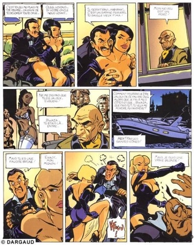 On ne peut vraiment plus se fier à rien ni à personne. Prenez Andréï Sergueivitch Kovolenko dit Strigoï. Un malfaisant pur sucre qui débroussaillait les méandres du génome humain bien avant Graig Venter. On le croyait finement découpé en tranches et depuis longtemps digéré par des bagnards avec lesquels il jouait la fille de l'air en Sibérie. Et bien pas du tout. Le sinistre s'en était sorti et a pu, pendant une petite décennie, se pencher sur les joies du clonage humain dans les labo roumains du couple Ceausescu. Du coup, un gros malaise pèse sur l'origine de quelques rescapés des régimes dictatoriaux de l'Est. La sublime Tatania Kovolenko, formée par Carlos himself et passée à l'Ouest, se gratte son adorable occiput en se demandant si elle est née d'un papa et d'une maman selon la bonne vieille méthode ou dans une éprouvette. Même question pour Bwaza, la nana chocolat aux inoubliables dessous blancs. Comment expliquer sa réapparition alors que son bateau s'est transformé en chaleur pure sur les flots bleus du lac Léman ? La question agace du monde. Et même le Vatican qui, du coup, envoie ses Sacristains faire le ménage. Par le vide. Pas des câlins, les Sacristains... Entre les différents services secrets qui grenouillent allègrement dans notre pauvre monde, le scénariste Corteggiani évolue comme un poisson-chat dans l'eau d'un bassin aux eaux très glauques. Grand admirateur de Charlier (il scénarise La jeunesse de Blueberry) Corteggiani justifie pleinement la phrase du maître figurant en exergue du premier tome de Tatiana K. : " Dès qu'on soulève un couvercle, c'est fou ce qu'on peut découvrir dessous ". Quant à Meynet, il se régale à dessiner scènes d'action et succulentes nanas. Le lecteur lui, croise les doigts et rêve de voir jaillir des chaudrons génétiques de l'ignoble Kovolenko des dizaines de Tatiana, des dizaines de Bwaza...