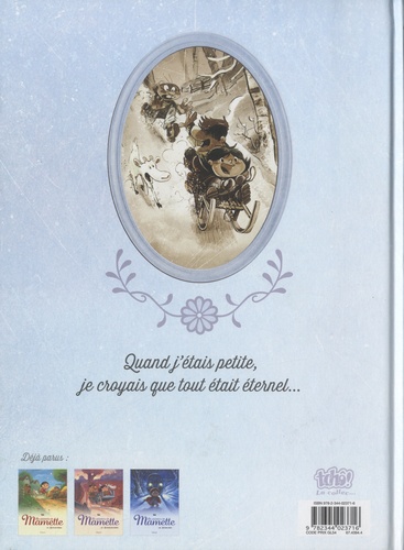 Mamette n'a pas toujours été une douce grand-mère ! Dans son enfance, on l'appelait encore Marinette, fillette de 9 ans envoyée par sa mère chez ses grands-parents et bien forcée de s'adapter à la rude vie dans la campagne des années 1930. Heureusement, Marinette était déjà dotée d'un optimisme à toute épreuve ! Et il lui en fallait, pour supporter Jacques et Jeannot, deux prétendants qui se battaient comme des chiffonniers pour l'amour de leur belle ! Ils auraient dû savoir qu'à son âge, celui qui comptait le plus dans son coeur, c'était son papa ! Et en cette période de Noël, Marinette aurait tellement aimé revoir son papounet... Alors que la série animée Les Souvenirs de Mamette est actuellement diffusée sur M6 et adaptée en romans poche, les albums de la BD qui ont inspiré la série animéesortent dans un nouveau format cartonnée qui permet de redécrouvrir l'univers graphique de Nob !