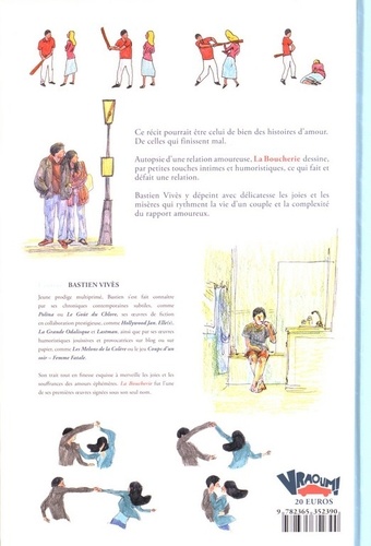 Ce récit pourrait être celui de bien des histoires d'amour. De celles qui finissent mal. Autopsie d'une relation amoureuse, La Boucherie dessine, par petites touches intimes et humoristiques, ce qui fait et défait une relation. Bastien Vives y dépeint avec délicatesse les joies et les misères qui rythment la vie d'un couple et la complexité du rapport amoureux.