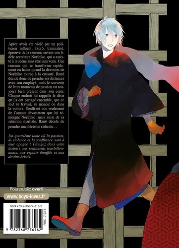 Après avoir été violé par un politicien influent, Ikuro, traumatisé, éprouve de la rancune envers son fidèle secrétaire Norihiko, qui a assisté à la scène sans être intervenu. Une rancune qui se transforme rapidement en haine quand la dévotion de Norihiko tourne à la cruauté, Ikuro décide donc de prendre ses distances avec son employé, mais le souvenir de leurs moments de passion est toujours bien présent dans son coeur. Chaque endroit lui rappelle le désir qu'ils ont partagé ensemble, que ce soit au travail, au manoir ou dans la voiture. Souffrant non seulement de l'amour dévastateur que lui témoigne Norihiko, mais aussi de sa situation maritale, Ikuro décide de prendre une décision radicale ...