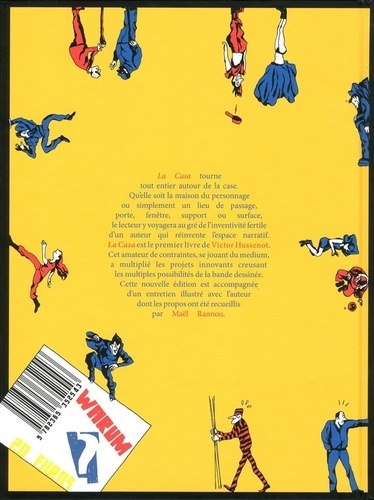 La Casa tourne tout entier autour de la case. Qu'elle soit la maison du personnage ou simplement un lieu de passage, porte, fenêtre, support ou surface, le lecteur y voyagera au gré de l'inventivité fertile d'un auteur qui réinvente l'espace narratif. La Casa est le premier livre de Victor Hussenot. Cet amateur de contraintes, se jouant du medium, a multiplié les projets innovants creusant les multiples possibilités de la bande dessinée. Cette nouvelle édition est accompagnée d'un entretien illustré avec l'auteur dont les propos ont été recueillis par Maël Rannou.