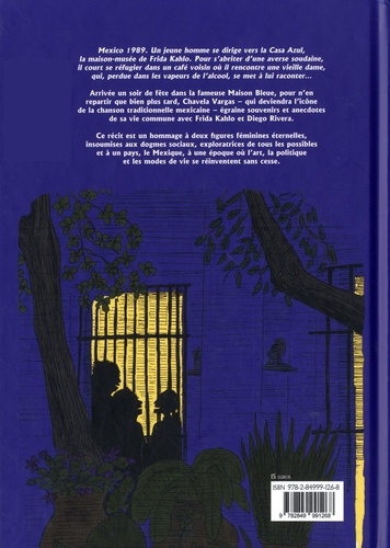 Mexico 1989. Un jeune homme se dirige vers la Casa Azul, la maison-musée de Frida Kahlo. Pour s'abriter d'une averse soudaine, il court se réfugier dans un café voisin où il rencontre une vieille dame, qui, perdue dans les vapeurs de l'alcool, se met à lui raconter... Arrivée un soir de fête dans la fameuse Maison Bleue, pour n'en repartir que bien plus tard, Chavela Vargas - qui deviendra l'icône de la chanson traditionnelle mexicaine - égraine souvenirs et anecdotes de sa vie commune avec Frida Kahlo et Diego Rivera. Ce récit est un hommage à deux figures féminines éternelles, insoumises aux dogmes sociaux, exploratrices de tous les possibles et à un pays, le Mexique, à une époque où l'art, la politique et les modes de vie se réinventent sans cesse.