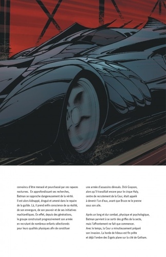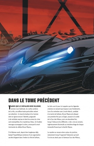 La Cour des Hiboux prend son envol, et la nuit à venir pourrait bien signer la mort de Gotham City elle-même. Lancés depuis les hauteurs de la ville, les Ergots, émissaires assassins de la Cour, ont pour mission de mettre à mort les personnalités les plus progressistes de la cité, laissant à leurs maîtres le champ libre pour étendre leur emprise. Les prochains noms sur leur liste : Lincoln March et Bruce Wayne...