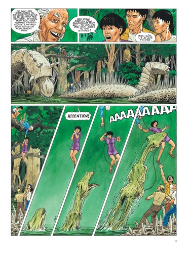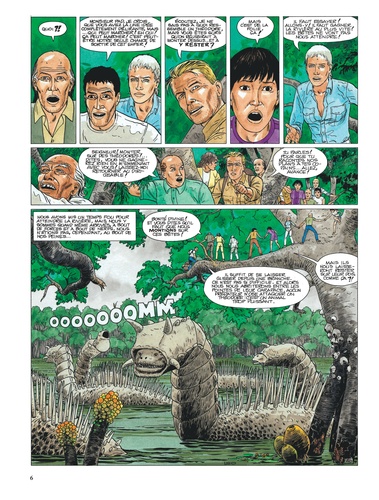 Flash-back : Aldebaran, la planète où s'est établie la première colonie humaine hors du système solaire, est aux mains d'un régime totalitaire, et nos héros sont traqués par la police. Parmi eux, Marc et Kim, rescapés du village d'Arena Blanca englouti par la bave de la mantrisse ; Alexa et Driss qui, depuis cent ans, bénéficient d'un élixir de jeunesse distribué par la même mystérieuse mantrisse. Les voilà échoués avec leurs amis dans un gigantesque marécage infesté de monstres carnivores. Certains essaient de rejoindre la mer à dos de théodores, sympathiques herbivores, tandis que les autres descendent la rivière dans une grosse calebasse vide. Mais alors qu'ils atteignent enfin la mer, un dirigeable se profile dans le ciel avec, à son bord, le gouvernement au complet. Dieu merci, la mantrisse est intelligente. Elle sait reconnaître les siens et ne distribue pas son élixir de jeunesse ? le plus vieux rêve de l'humanité ? à n'importe qui. Leo boucle en beauté le cycle "Aldebaran", série qui se situe entre SF et fantastique, et dont le scénario envoûtant et attachant est soutenu par des inventions graphiques captivantes : les monstres sont "inédits" et franchement infects, et le fonctionnement de la mantrisse, créature d'architecture étrange et improbable, arrive à nous étonner. Heureusement, l'histoire n'est pas finie, car l'auteur nous annonce le départ d'un astronef pour Bételgeuse, constellation d'Orion...