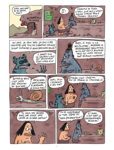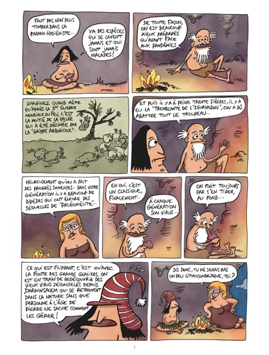 Il fallait s'y attendre : c'est chez l'Homme de Pékin que la plus grande épidémie de la préhistoire démarre. "Manger, être mangé", d'accord, mais pas du pangolin ! Comme tous les êtres vivants, les Dotcom vont devoir échapper au nouveau virus, le Lascauvid-19, aussi dangereux que la Grippe Arboricole de -40 018 ! Les autorités de la vallée décident un confinement général et, brutalement, c'est tout le Paléolithique qui se met à l'arrêt... Déjà qu'on n'avançait pas beaucoup ! Tandis que les parents galèrent à donner des cours de chasse et de préhistoire-géo à distance, les chamans essaient de contenir l'épidémie, les primates se mettent à confectionner des masques à partir de peaux de bananes, et Url et Web décident de trouver un remède à la maladie ! Comme à son habitude, Jul s'empare de l'actualité avec à propos pour faire rire et réfléchir !