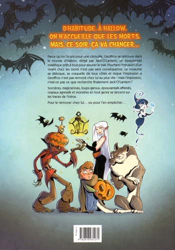 Parce qu'on l'a pris pour une citrouille, Geoffroy se retrouve dans le monde d'Hallow, dirigé par Jack'O'Lantern, un épouvantail maléfique prêt à tout pour assurer le mal. Pourtant l'intrusion d'un vivant chez les morts n'est pas sans conséquence. Le royaume se disloque, se craquelle de tous côtés et risque l'implosion si Geoffroy n'est pas renvoyé chez lui au plus vite ! Mais l'implosion, n'est-ce pas ce que recherche finalement Jack'O'Lantern ? Sorcières, magiciennes, loups-garous, épouvantails affamés, roseaux agressifs et monstres en tout genre se lancent sur les traces de l'intrus. Pour le renvoyer chez lui, ou pour l'en empêcher...