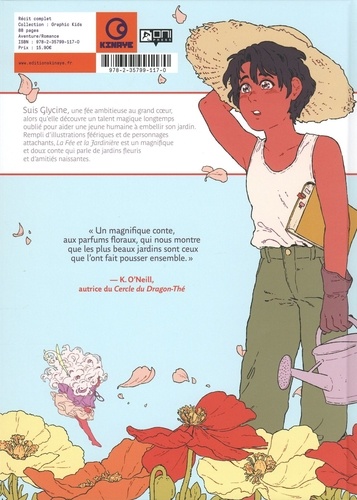 Suis Glycine, une fée ambitieuse au grand coeur, alors qu'elle découvre un talent magique longtemps oublié pour aider une jeune humaine à embellir son jardin. Rempli d'illustrations féériques et de personnages attachants, La Fée et la Jardinière est un magnifique et doux conte qui parle de jardins fleuris et d'amitiés naissantes.