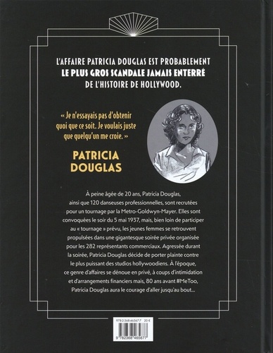 L'AFFAIRE PATRICIA DOUGLAS EST PROBABLEMENT LE PLUS GROS SCANDALE JAMAIS ENTERRE DE L'HISTOIRE DE HOLLYWOOD. "Je n'essayais pas d'obtenir quoi que ce soit. Je voulais juste que quelqu'un me croie". A peine âgée de 20 ans, Patricia Douglas, ainsi que 120 danseuses professionnelles, sont recrutées pour un tournage parla Metro-Goldwyn-Mayer. Elles sont convoquées le soir du 5 mai 1937, mais, bien loin de participer au "tournage" prévu, les jeunes femmes se retrouvent propulsées dans une gigantesque soirée privée organisée pour les 282 représentants commerciaux. Agressée durant la soirée, Patricia Douglas décide de porter plainte contre le plus puissant des studios hollywoodiens. A l'époque, ce genre d'affaires se dénoue en privé, à coups d'intimidation et d'arrangements financiers mais, 80 ans avant #MeToo, Patricia Douglas aura le courage d'aller jusqu'au bout..