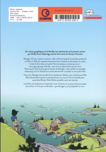 Un roman graphique sur la Famille, les sentiments et le premier amour par Molly Knox Ostertag, actrice de la série du Garçon Sorcière. Morgan,15 ans, cache un secret : elle a hâte de quitter la parfaite petite île où elle vit. Elle est impatiente de terminer le lycée et de quitter sa mère, triste et divorcée, son petit frère lunatique, et plus que tout son super groupe d'amies... qui ne la comprennent pas du tout. Parce qu'en fait, le plus grand secret de Morgan, c'est qu'elle en possède beaucoup, et l'un d'entre eux serait de donner un baiser à une autre fille. Une nuit, Morgan est sauvée de la noyade par Keltie, une mystérieuse fille. Elles deviennent amies et soudainement, la vie sur file ne semble plus aussi étouffante. Mais Keltie possède aussi ses secrets. Les filles commencent à s'attacher l'une à l'autre, et ce que chacune essaie de cacher va finir parse dévoiler... que Morgan y soit préparée ou non.