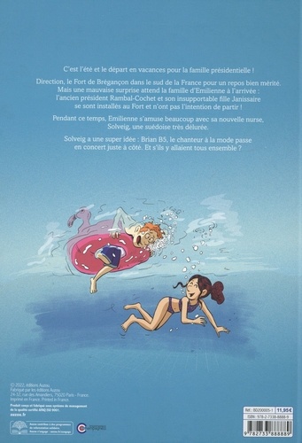 Après une année éprouvante, toute la famille présidentielle part en vacances au Fort de Brégançon. Mais rien ne se passe comme prévu ! C'est l'été et le départ en vacances pour la famille présidentielle ! Direction, le Fort de Brégançon dans le sud de la France pour un repos bien mérité avec cette première année à l'Elysée. Mais une mauvaise surprise attend la famille d'Emilienne à l'arrivée : l'ancien président Rambal-Cochet et son insupportable fille Janissaire se sont installés au Fort et n'ont pas l'intention de partir ! La cohabitation s'annonce difficile. Pendant ce temps, Emilienne s'amuse beaucoup avec sa nouvelle nurse, Solveig, une suédoise très délurée. Solveig a une super idée : Brian B5, le chanteur à la mode passe en concert juste à côté, et si elle les emmenait tous, Emilienne, Janissaire et Jean-Kévin ? Emilienne va décidément passer un drôle d'été.