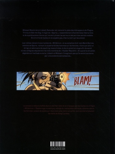 Mikael Blomkvist et Lisbeth Salander ont remonté la piste des kidnappeurs de Plague, Trinity et Bob the Dog. De leur surnom "Sparta", ces extrémistes patriotiques pro-Blancs ont pour intention de pirater les données du gouvernement suédois en s'infiltrant dans les serveurs des services secrets. Et si les trois hackeurs ne coopèrent pas, c'est la mort qui les attend. Les indices mènent le journaliste de "Millénium" et sa complice droit vers Mark Borrow, écrivain d'un best-seller vantant la supériorité masculine et homme politique associé aux mouvements radicaux d'extrême-droite. Alors que celui-ci dirige un séminaire de coaching, le duo le prend en otage afin de savoir où ses collègues séquestrent les pirates informatiques. Et quand la situation dégénère en fusillade ouverte, Lisbeth et Mikael n'imaginent pas qu'ils seront soutenus par une ancienne connaissance...