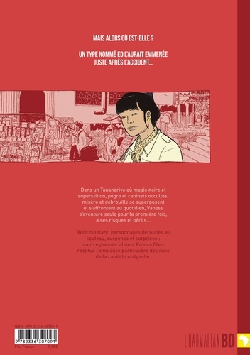 Dans un Tananarive où magie noire et superstition, pègre et cabinets occultes, misère et débrouille se superposent et s'affrontent au quotidien, Vaness s'aventure seule pour la première fois, à ses risques et périls... Récit haletant, personnages découpés au couteau, suspense et surprises : pour ce premier album, Franco Clerc restitue l'ambiance particulière des rues de la capitale malgache.