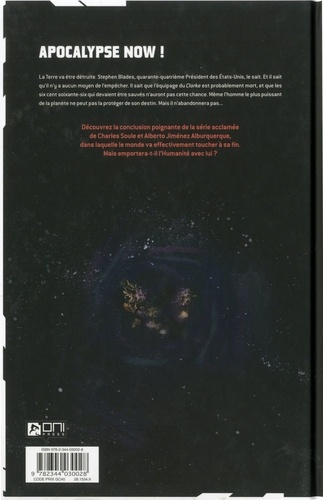 Apocalypse now La Terre va être détruite. Stephen Blades, 45e président des Etats-Unis, le sait. Et il sait qu'il n'y a aucun moyen de l'en empêcher. Il sait que l'équipage du Clarke est probablement mort, et que les 666 qui devaient être sauvés n'auront pas cette chance. Même l'homme le plus puissant de la planète ne peut pas la protéger de son destin. Mais il n'abandonnera pas... Découvrez la conclusion poignante de la série acclamée de Charles Soule et Alberto Jiménez Alburquerque, dans laquelle le monde va effectivement toucher à sa fin. Mais emportera-t-il l'humanité avec lui ?