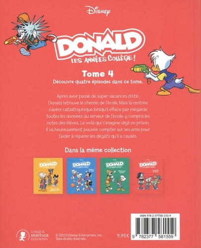 Donald profite de vacances improvisées au collège lorsque le directeur s'absente durant une semaine ! Puis il part à la campagne avec Mickey pour les vacances scolaires. Mais tout ne se passe pas comme prévu quand ils découvrent avec horreur qu'il n'y a pas le wifi. Ils vont devoir trouver d'autres moyens de passer le temps... Heureusement que Donald n'est jamais à court d'idées pour s'occuper ! Mais son enthousiasme lui joue des tours à la rentrée, qui s'avère catastrophique quand il efface par mégarde toutes les données du serveur de l'école, y compris les notes des élèves. Le voilà qui s'imagine déjà en prison. Avant d'en arriver là, Donald devra trouver un moyen de réparer les dégâts qu'il a causés. Peut-être que tout espoir n'est pas encore perdu ?