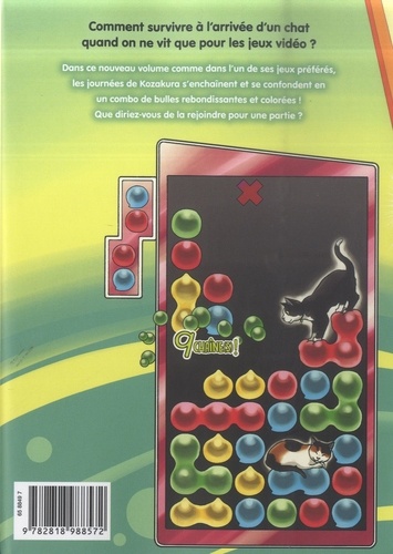 Comment survivre à l'arrivée d'un chat quand on ne vit que pour les ¡eux vidéo ? Dans ce nouveau volume comme dans l'un de ses jeux préférés, les journées de Kozakura s'enchainent et se confondent en un combo de bulles rebondissantes et colorées ! Que diriez-vous de la rejoindre pour une partie ?
