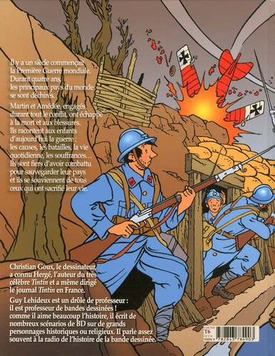 Il y a un siècle commençait la première guerre mondiale. Durant quatre ans, les principaux pays du monde se sont déchirés. Martin et Amédée, engagés durant tout le conflit, ont échappé à la mort et aux blessures. Ils racontent aux enfants d'aujourd'hui la guerre : les causes, les batailles, la vie quotidienne, les souffrances... Ils sont fiers d'avoir combattu pour sauvegarder leur pays et ils se souviennent de tous ceux qui ont sacrifié leur vie.