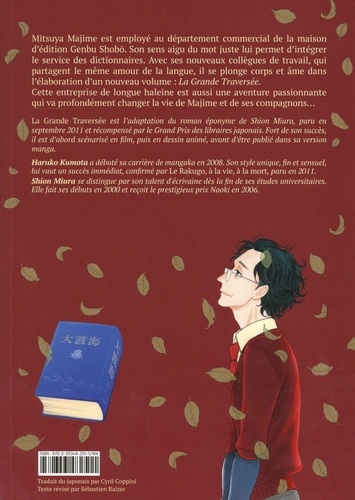 Mitsuya Majime est employé au département commercial de la maison d'édition Genbu Shobo. Son sens aigu du mot juste lui permet d'intégrer le service des dictionnaires. Avec ses nouveaux collègues de travail, qui partagent le même amour de la langue, il se plonge corps et âme dans l'élaboration d'un nouveau volume : La Grande Traversée. Cette entreprise de longue haleine est aussi une aventure passionnante qui va profondément changer la vie de Majime et de ses compagnons...