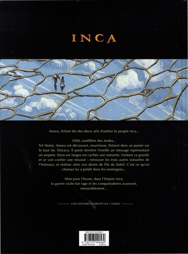 Amaru. Enfant élu des dieux afin d'unifier le peuple inca... 1509, cordillère des Andes... Tel Moïse, Amaru est découvert, nourrisson, flottant dans un panier sur le haut lac Titicaca. Il porte derrière l'oreille un tatouage représentant un serpent. Dans ses langes est cachée une statuette. L'enfant va grandir et se voir confier une mission : retrouver les trois autres statuettes de l'Antisuyo, et réaliser alors son destin de Fils du Soleil. C'est ce qu'un chaman lui a prédit dans les montagnes... Mais pour l'heure, dans l'Empire inca, la guerre civile fait rage et les conquistadors avancent, inexorablement...