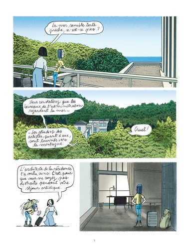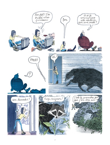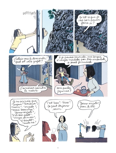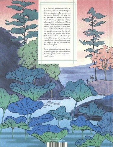 Catherine Meurisse a résidé plusieurs mois à la Villa Kujoyama, une résidence d'artistes située à Kyoto. Cherchant à renouveler son inspiration, elle s'est immergée dans les paysages japonais. Un an plus tard, elle séjournait de nouveau au Japon, quand le typhon Hagibis dévastait une partie du pays. De ces deux voyages, placés sous le signe de la nature, tour à tour muse et dévastatrice, est né l'album La Jeune femme et la mer. " Je voudrais peindre la nature ", affirme la dessinatrice française à peine atterrie sur le sol japonais. Mais la nature ne sait pas prendre la pose. Elle se transforme, nous entoure, nous subjugue. Sur son chemin, comme un miroir, un peintre japonais, qui, lui, voudrait " peindre une femme. " Quelle femme ? Nami, la jeune femme de l'auberge thermale où les deux artistes vont séjourner ? Nami, mystérieuse, n'est pas un modèle facile. Elle semble liée aux éléments naturels : elle sait lire l'arrivée d'un typhon dans les plis de la mer. Pour décrypter les signes dans ce décor rural du sud de l'archipel, un tanuki effronté, animal mythologique incontournable de la culture nippone, surgit au gré des déambulations de nos deux amis artistes. Dans une nature magnifiquement retranscrite par un trait de plume précis, où plane l'ombre d'Hokusaï et des maîtres de l'estampe, Catherine Meurisse propose avec "La Jeune femme et la mer" un récit initiatique qui questionne la place de l'Homme dans la nature et le recours à l'art pour saisir les paysages qui disparaissent.