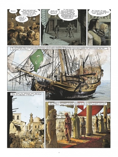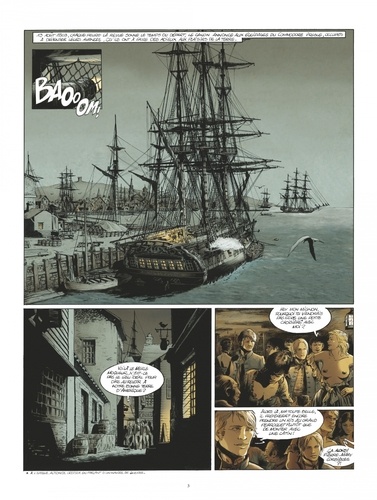 La nouvelle grande série d'aventure maritime ! Boston, 1803. Pierre-Mary Corbières, jeune homme glabre et timide de 16 ans, embarque comme aspirant à bord de l'USS Constitution, un navire de guerre en partance pour la Méditerranée combattre les états Barbaresques. Alors que l'équipage profite du long voyage qui les attend pour s'exercer aux manoeuvres, Pierre-Mary, lui, se familiarise avec la vie en mer et en profite pour renouer avec d'anciennes connaissances, comme le taciturne Nicholas. Compagnons de bord puis frères d'armes, les deux hommes vont se rendre compte qu'ils portent chacun le fardeau de lourds secrets de familles... Leur passé refera-t-il surface dans la tourmente de la guerre qui les attend ? Après Les Pirates de Barataria, Franck Bonnet nous propose, cette fois-ci en tant qu'auteur complet, une nouvelle série maritime au parfum d'aventure. Basée sur des faits réels, cette histoire au souffle romanesque se révèle aussi captivante que précise d'un point de vue historique et maritime, avec notamment un souci tout particulier apporté aux détails techniques (vocabulaire marin, fidélité dans la représentation des navires et du matériel, etc.). Sans conteste le prochain incontournable de la bande dessinée d'aventure maritime.