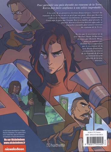 Pour assurer une paix durable au Royaume de la Terre, Korra doit faire confiance à un allié improbable ! A la veille de ses premières élections, l'avenir du Royaume de la Terre est menacé par son passé. Alors que Kuvira s'efforce de reconquérir son honneur, le sournois commandant Guan sape la paix que l'Avatar Korra a instaurée pour s'emparer du pouvoir. Korra et Kuvira doivent apprendre à travailler ensemble pour assurer l'avenir du Royaume de la Terre. Profitez de la suite des aventures d'Avatar, maintenant avec une nouvelle section de carnet de croquis et des commentaires d'artistes ! Ecrit par le co-créateur de la série Michael Dante DiMartino et dessiné par Michelle Wong , avec une consultation de Bryan Konietzko, c'est la suite officielle de la série télévisée !