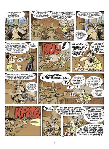 La légende était pourtant écrite... Abe est scénariste de BD et Lagribouille son dessinateur. Un beau matin, Abe se réveille dans un saloon, époque Far West. Que s'est-il passé : a-t-il trop picolé hier, est-ce un cauchemar ? Mais le délire devient encore plus tordu lorsque apparaissent les personnages de la BD qu'ils sont en train de réaliser. Visiblement, ils ne lui veulent pas que du bien... Heureusement, Lagribouille débarque en moto et sauve son compagnon des griffes des tueurs. Nos deux auteurs se retrouvent à vivre leur propre aventure dans laquelle ils ont bien semé la pagaille... Maintenant, c'est malin, il va falloir dessiner tout un tas de trucs pour que l'histoire retombe sur ses pattes ! 'Fane (repreneur émérite de la cultissime série Joe Bar Team) et Juan s'associent pour nous livrer une aventure décapante et complètement déjantée. Grâce à la créativité des deux auteurs, découvrez dans ce western joyeusement anachronique des cow-boys chevauchant des motos ou des voitures de sport, des avions et même Mickey ! Retrouvez la génèse de La Légende de Little Boost sur : http : //www. ventsdouest. com/littleboost