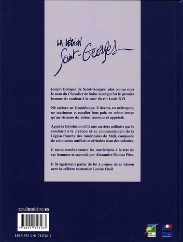 Joseph Bologne de Saint-Georges, plus connu sous le nom du Chevalier de Saint-Georges, fut le premier homme de couleur à la cour du roi Louis XVI. Né esclave en Guadeloupe, il devint, en métropole, un escrimeur et cavalier hors pair, en même temps qu'un virtuose du violon reconnu et apprécié. Après la Révolution il fit une carrière militaire qui le conduisit à la création et au commandement de la Légion franche des Américains du Midi, composée de volontaires antillais et africains issus des colonies. Il mena combat contre les Autrichiens à la tête de ses hommes et secondé par Alexandre Dumas Père. Il fit également parler de lui à propos de sa liaison avec la célèbre cantatrice Louise Fusil.
