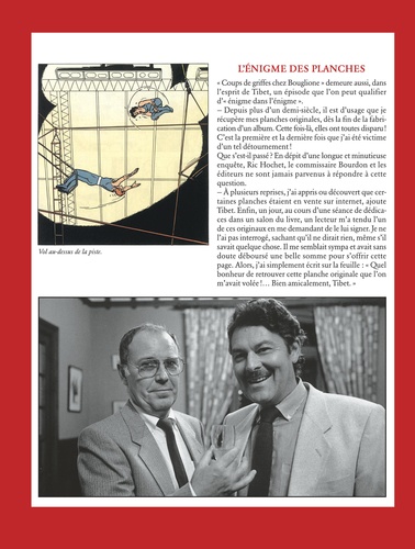 1955. Tout jeune créateur des aventures humoristiques du cow-boy Chick Bill, Tibet persuade son ami, le déjà fameux auteur de polars A. P Duchâteau, de scénariser, pour lui, des énigmes policières. Un dénommé Ric Hochet, petit vendeur du quotidien " La Rafale ", apparaît ainsi dans l'hebdomadaire " Tintin " où, en quatre pages, il démasque un redoutable espion. Ce bref exploit marque, pour cet adolescent futé, le début d'une brillante carrière de journaliste d'investigation et d'indémodable héros de BD. Secondé par le débonnaire commissaire Bourdon, conforté par l'affectueuse complicité de son amie Nadine, Ric Hochet résoudra une longue série de crimes. Enquêtes classiques ou à la limite du fantastique et de la science-fiction, tension, émotion, intuition, déduction, action : cette " Intégrale " vous présente toutes les affaires ténébreuses que sa perspicacité a élucidées et qui lui ont assuré une popularité rarement égalée.