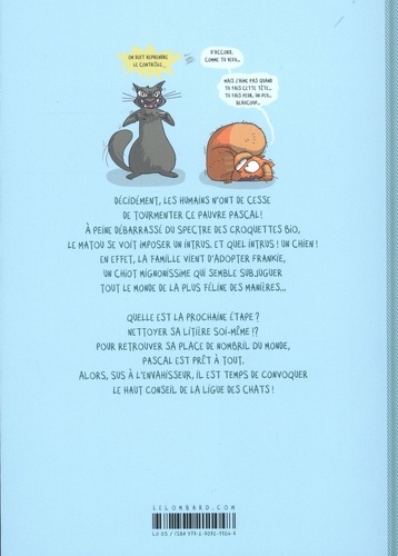 Décidément, les humains n'ont de cesse de tourmenter ce pauvre Pascal. A peine débarrassé du spectre des croquettes bio, voilà qu'ils s'attaquent à son quota d'attention ! En effet, ils viennent d'adopter Frankie, un chiot mignonissime qui semble les subjuguer de la plus féline des manières... Quelle est la prochaine étape ? Nettoyer sa litière soi-même ! ? Sus à l'envahisseur, il est temps de convoquer le haut conseil de la Ligue des Chats !