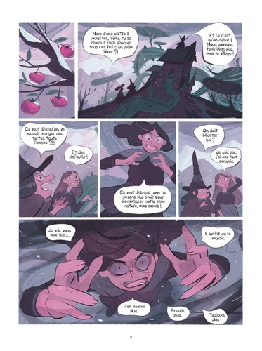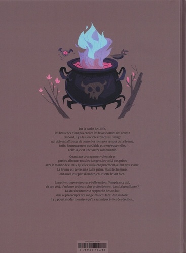 Par la barbe de Lilith, les brouches n'ont pas encore les fesses sorties des orties ! D'abord, il y a les sorcières restées au village qui doivent affronter de nouvelles menaces venues de la Brume. Enfin, heureusement que Zelda est restée avec elles. Celle-là, c'est une sacrée combinarde. Quant aux courageuses volontaires parties affronter tous les dangers, les voilà aux prises avec le monde des Omis, qu'elles voulaient justement, à fout prix, éviter. La Brume est certes une patte-pelue, mais les hommes ont aussi leur part d'ombre, et Grisette le sait bien. La petite troupe retrouvera-t-elle un jour Tempérance qui, de son cité, s'enfonce toujours plus profondément dans la brouillasse ? La Marche Brume se rapproche de son but sans se préoccuper des songe-malices tapis dans la foret. Il y a pourtant des monstres qu'il vaut mieux éviter de réveiller...