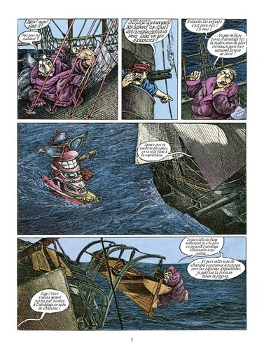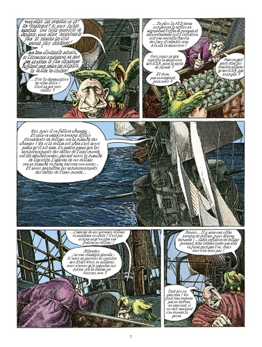 Quelque part dans l'immensité de l'océan vogue un équipage de pirates un peu particulier. A bord, ça discute philosophie, macroéconomie ou démographie anamorphosée. Qu'on se le dise, matelot, ces pirates-là ont le verbe fouillé et les idées larges ! Et les aventures qu'ils vivent ne sont en réalité qu'autant de prétextes à la réflexion. Un recueil d'histoires courtes au dessin fourni et imaginatif, associé à une pensée complexe et un ton délicieusement absurde.1000 Feuilles poursuit la publication du génial travail de Masse avec cette nouvelle édition d'un classique paru en 1987, aujourd'hui épuisé. Une œuvre unique, inclassable, inspiratrice de toute une génération d'auteurs, à commencer par Marc-Antoine Mathieu.
